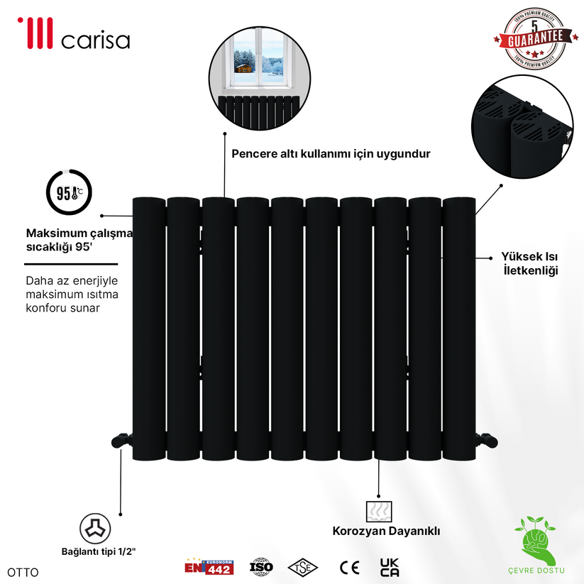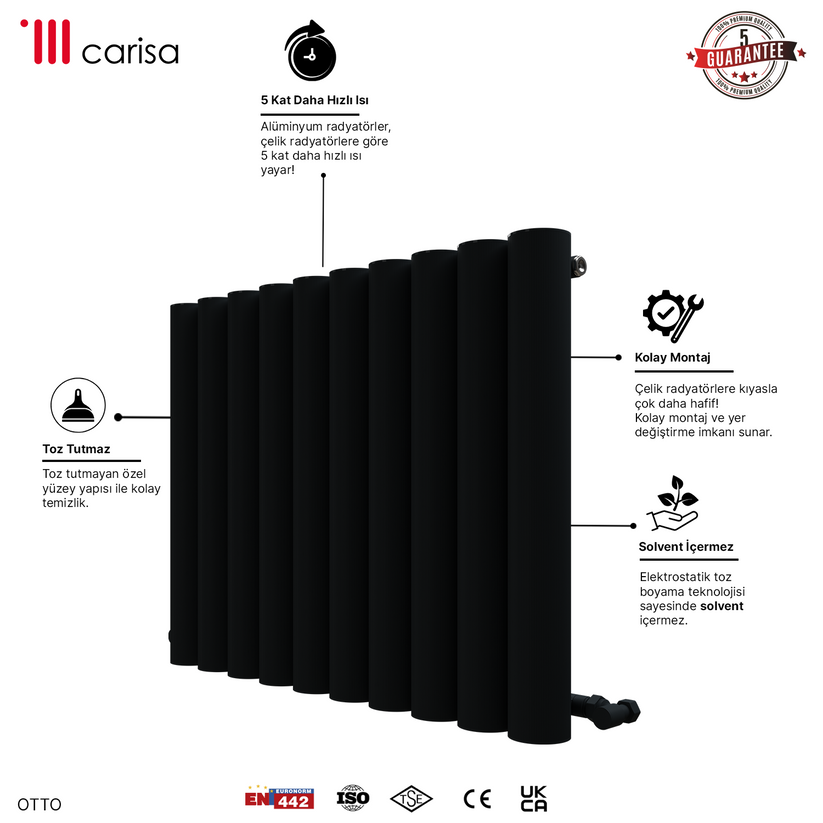 Carisa Otto Yatay Alüminyum Radyatör Modern Tasarım Siyah