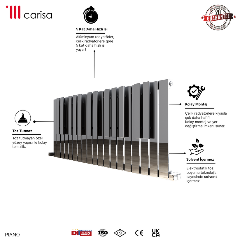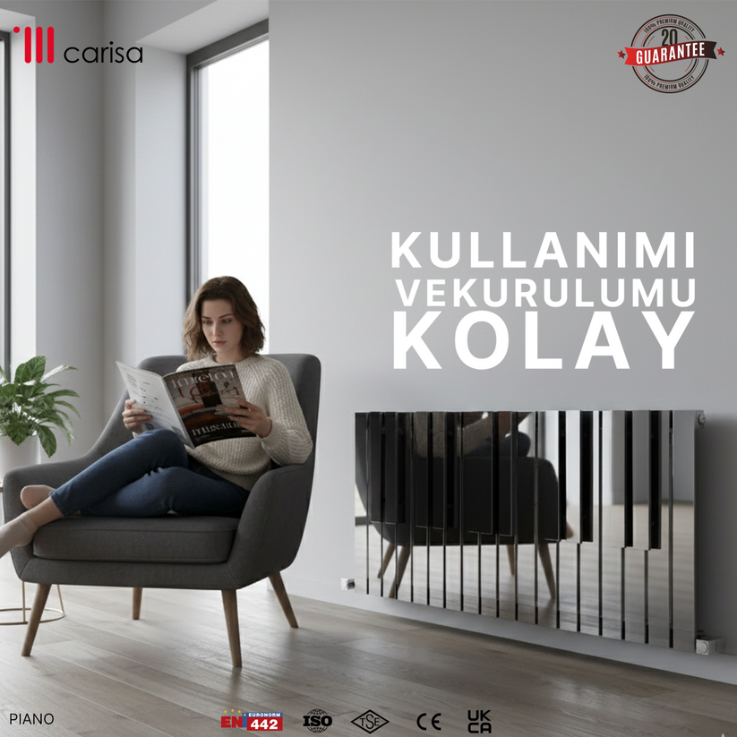 Carisa Piano Yatay Paslanmaz Çelik Radyatör Modern Tasarım Ayna Polisaj