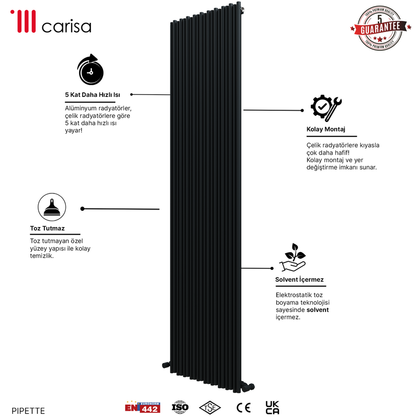 Carisa Pipette Dikey Alüminyum Radyatör Modern Tasarım Siyah