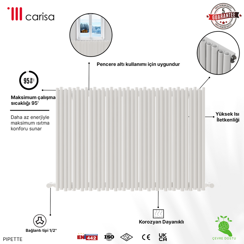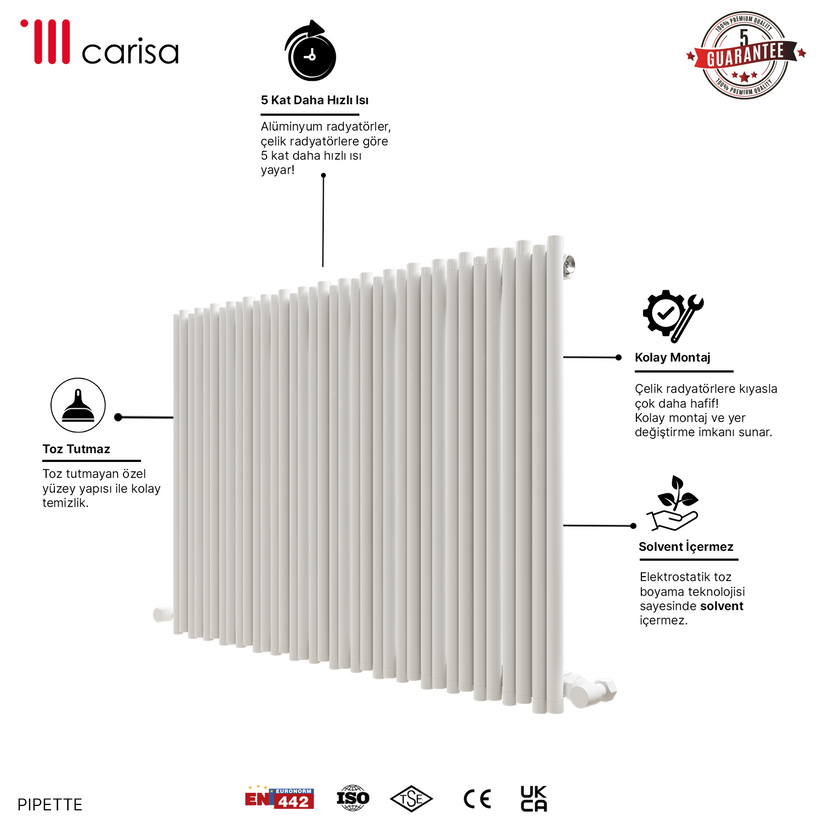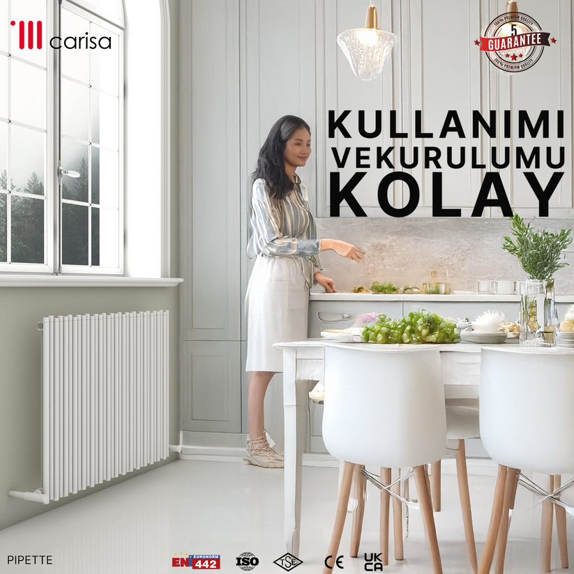 Carisa Pipette Yatay Alüminyum Radyatör Modern Tasarım Beyaz