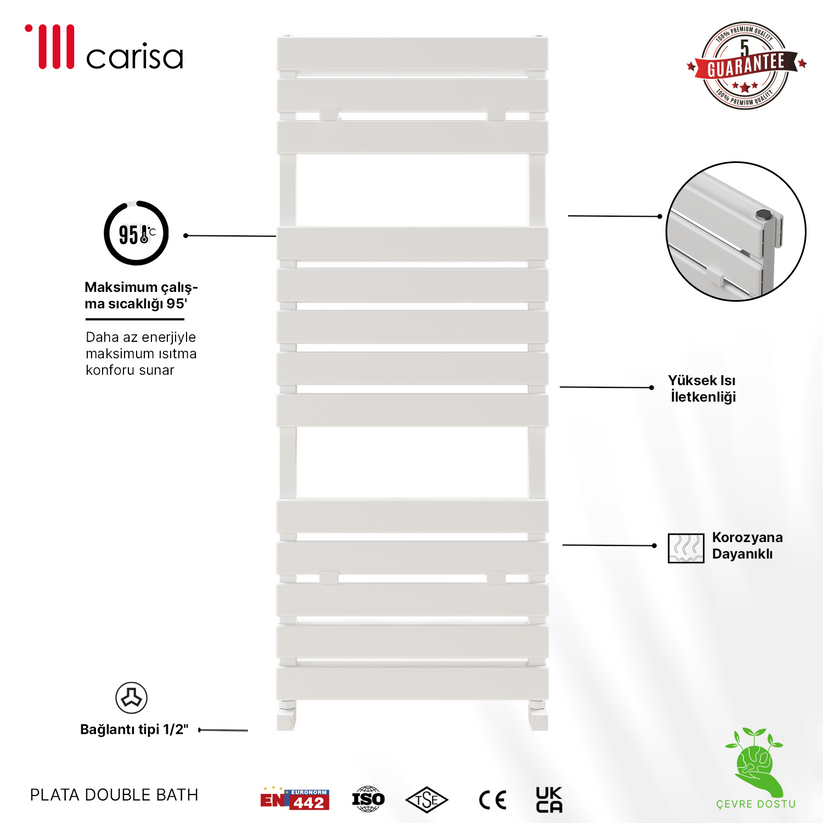 Carisa Plata Double Bath Alüminyum Havlupan Modern Tasarım Beyaz