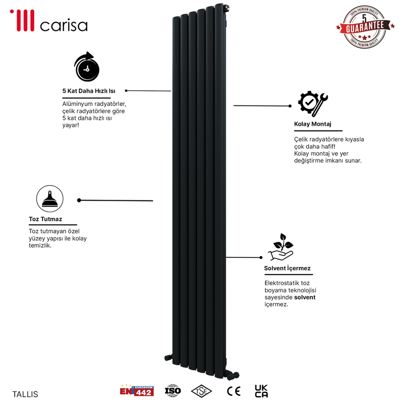Carisa Tallis Dikey Alüminyum Radyatör Modern Tasarım Antrasit