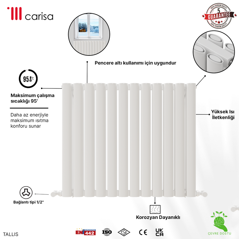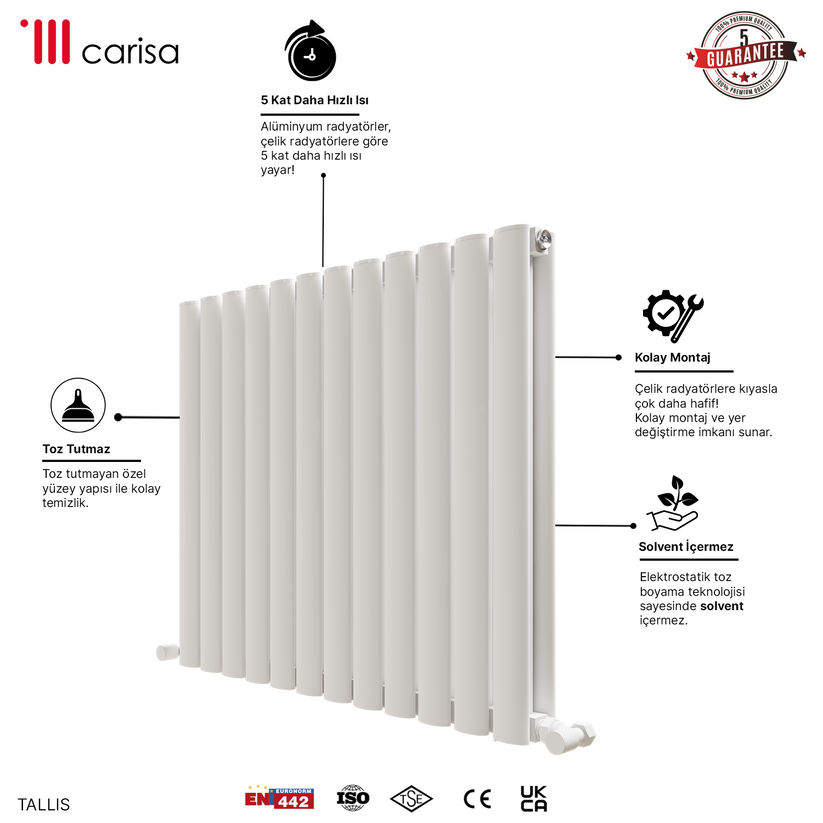 Carisa Tallis Double Alüminyum Radyatör Beyaz Standart Bağlantı.