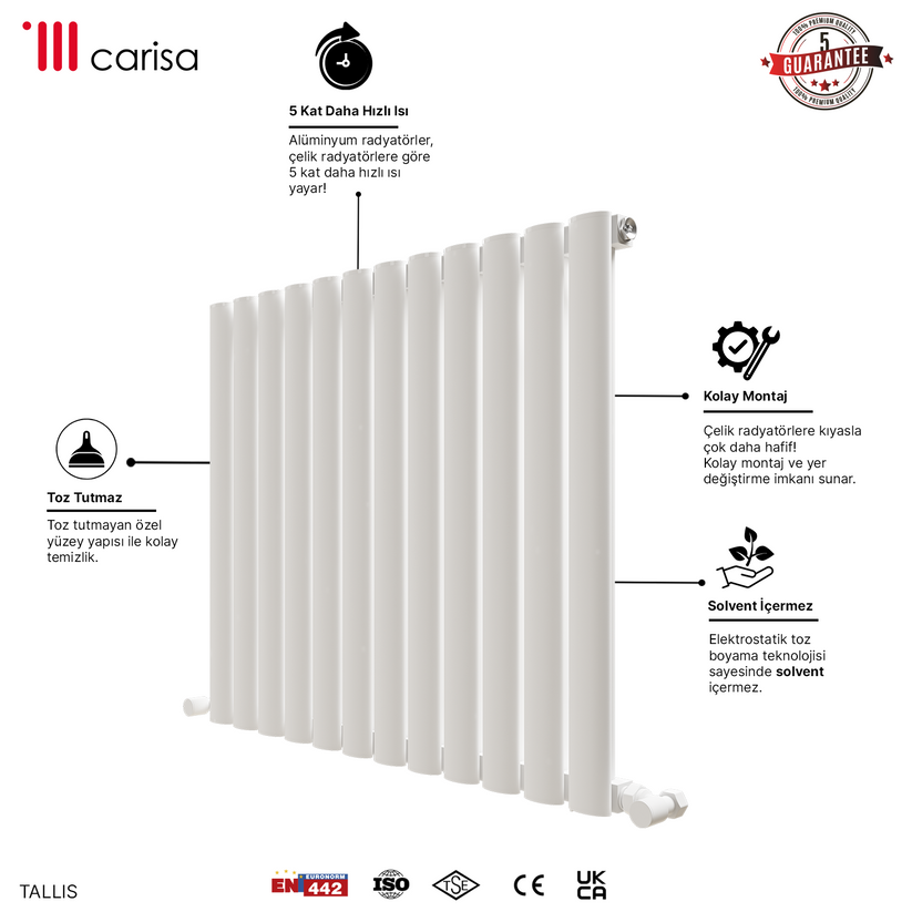 Carisa Tallis Yatay Alüminyum Radyatör Modern Tasarım Beyaz