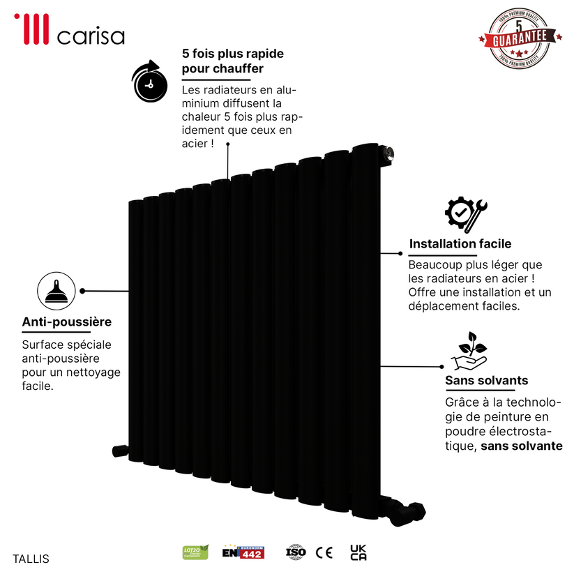 Carisa Tallis Yatay Alüminyum Radyatör Modern Tasarım Siyah
