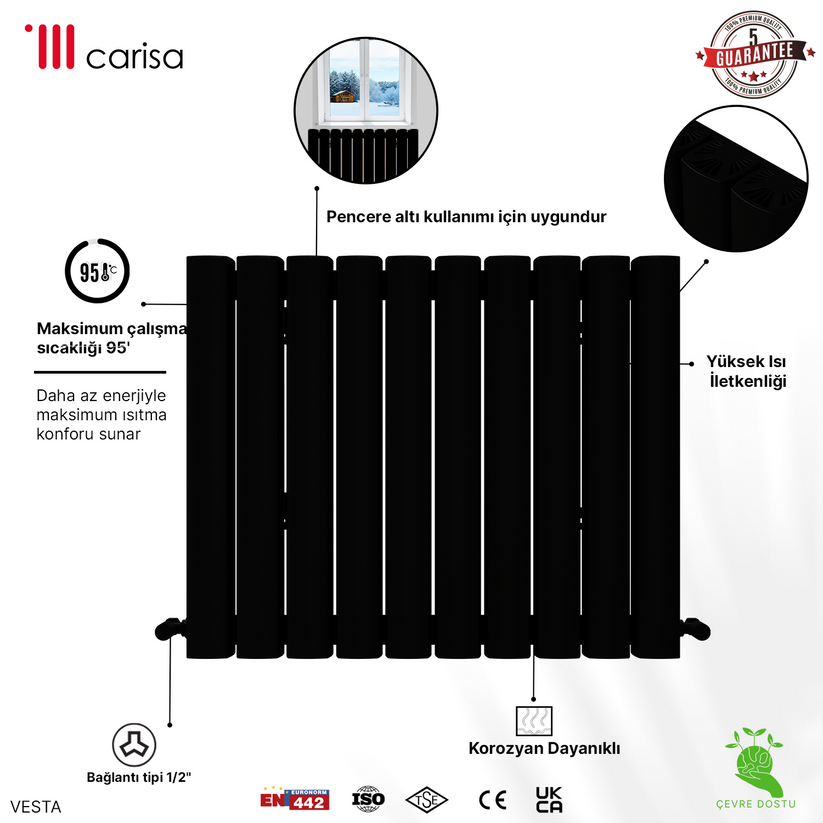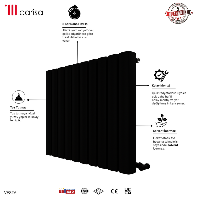 Carisa Vesta Alüminyum Radyatör Siyah Standart Bağlantı