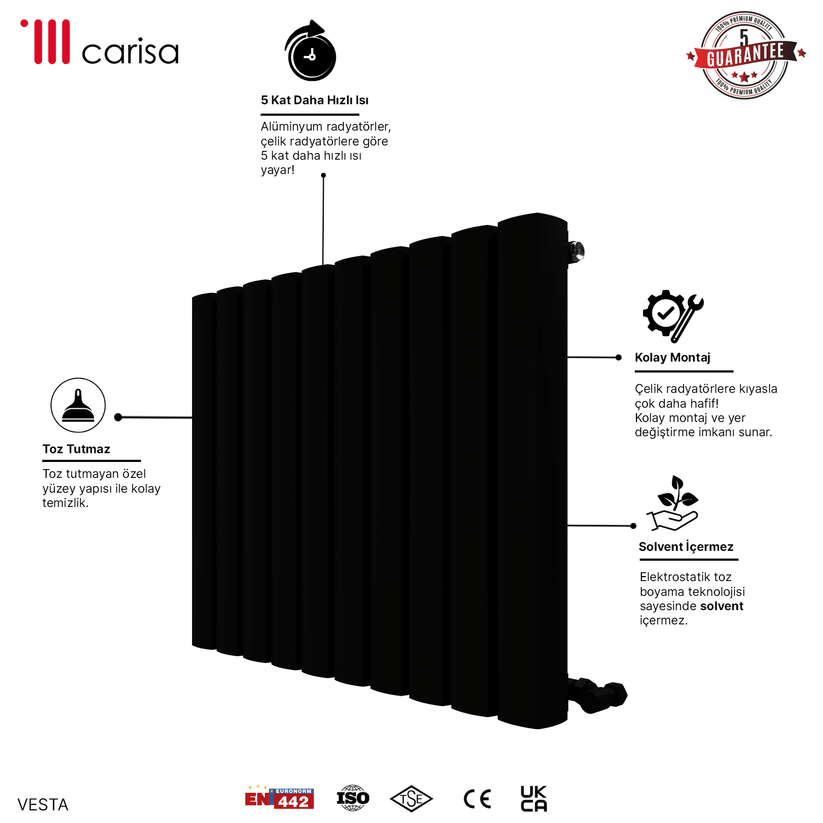 Carisa Vesta Yatay Alüminyum Radyatör Modern Tasarım Siyah