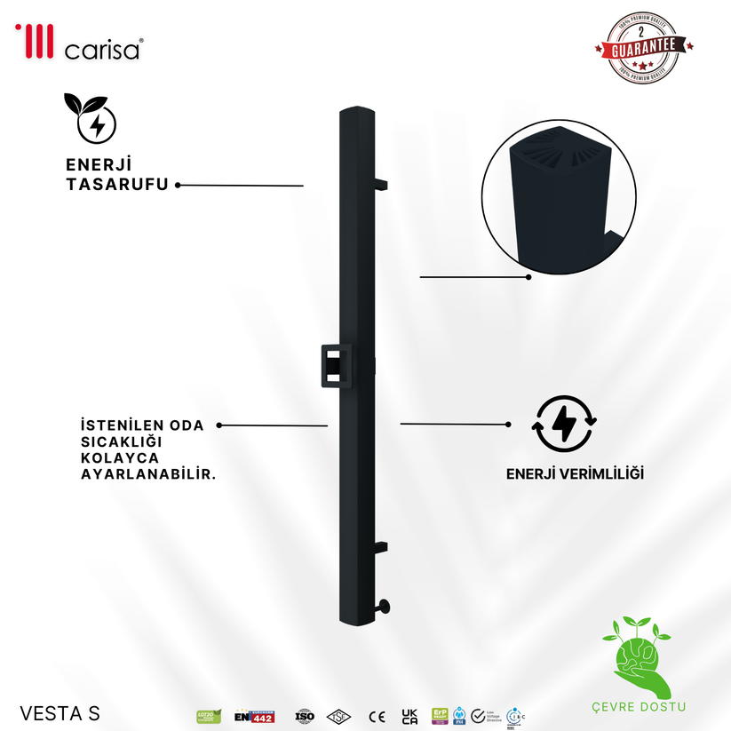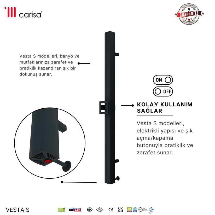 Carisa Vesta Single Elektrikli Havlupan Modern Tasarım Antrasit